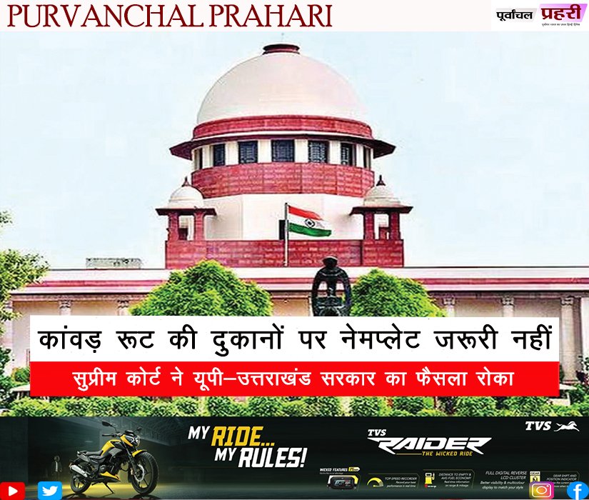 कांवड़ रूट की दुकानों पर नेमप्लेट जरूरी...