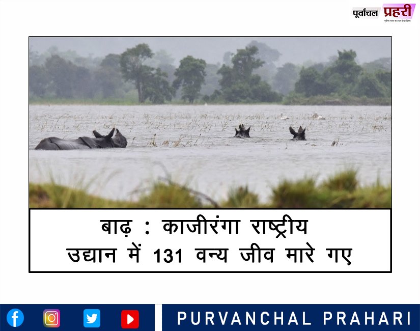 बाढ़ : काजीरंगा राष्ट्रीय उद्यान में 131...