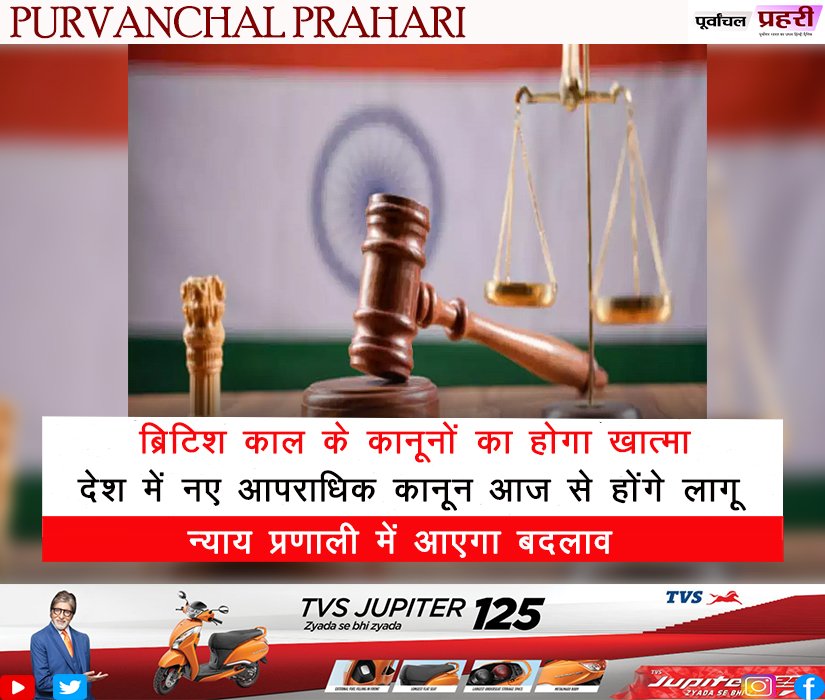 देश में नए आपराधिक कानून आज से होंगे लाग...