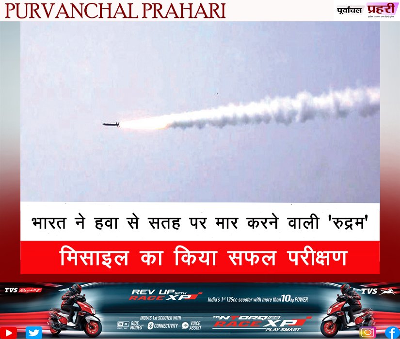 भारत ने हवा से सतह पर मार करने वाली 'रुद...