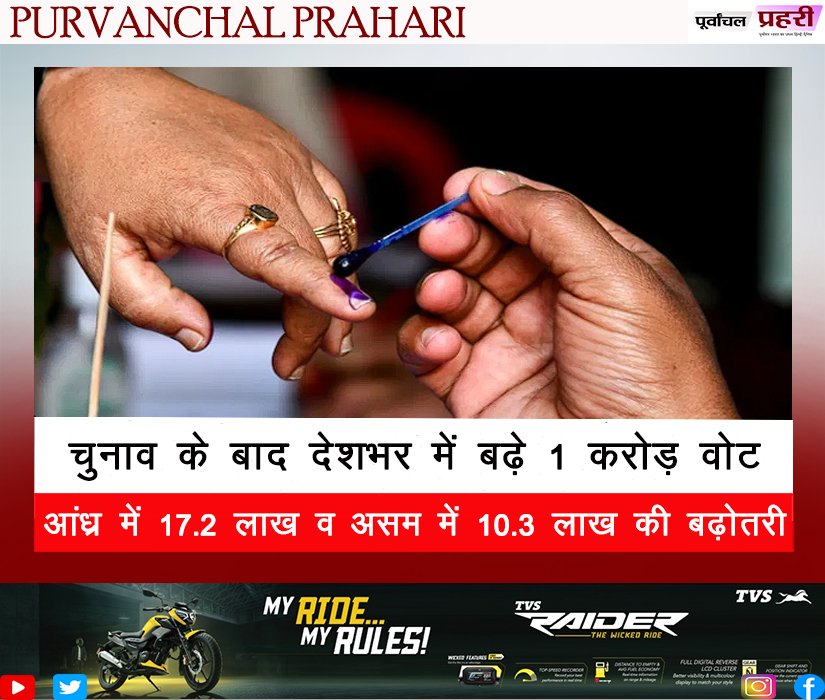 चुनाव के बाद देशभर में बढ़े 1 करोड़ वोट