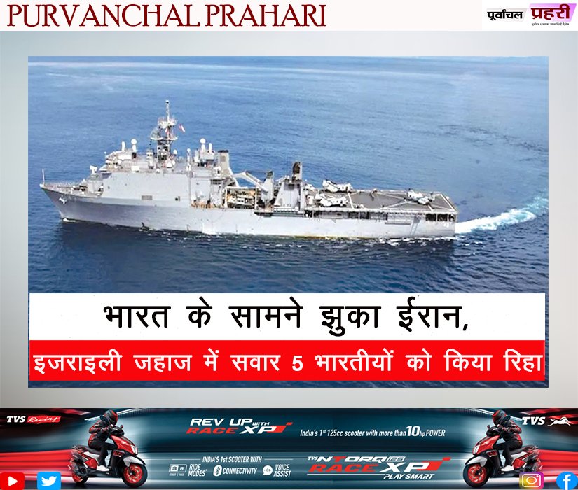 भारत के सामने झुका ईरान, इजराइली जहाज मे...