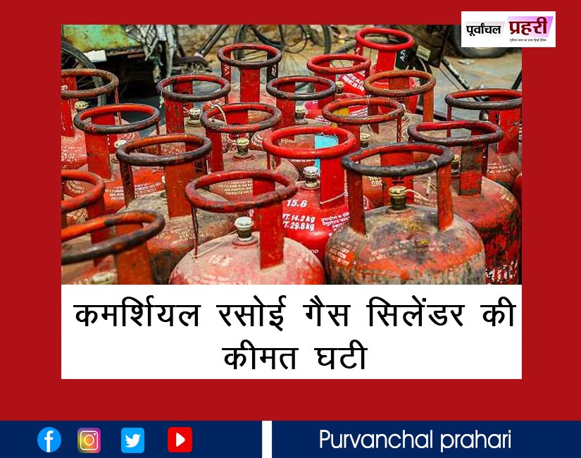 कमर्शियल रसोई गैस सिलेंडर की कीमत घटी