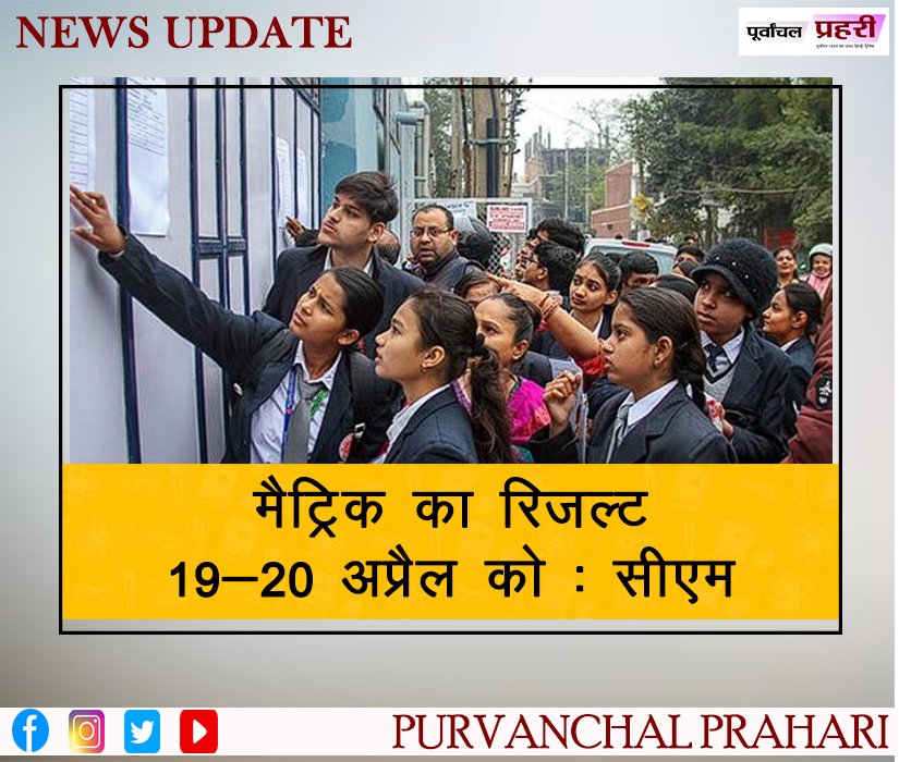 मैट्रिक का रिजल्ट 19-20 अप्रैल को : सीएम
