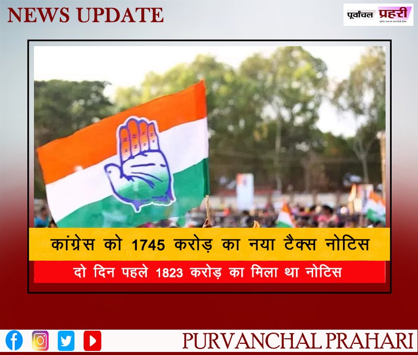 कांग्रेस को 1745 करोड़ का नया टैक्स नोटि...