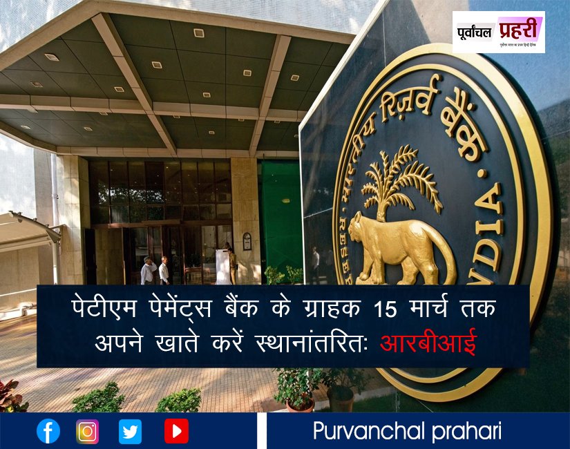 पेटीएम पेमेंट्स बैंक के ग्राहक 15 मार्च...