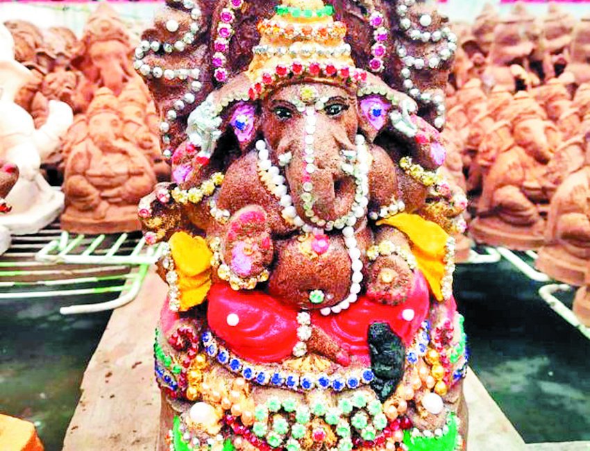 स्कूली बच्चे बना रहे ईको फ्रेंडली गणेश...