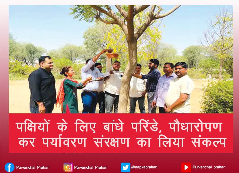 पक्षियों के लिए बांधे परिंडे, पौधारोपण क...