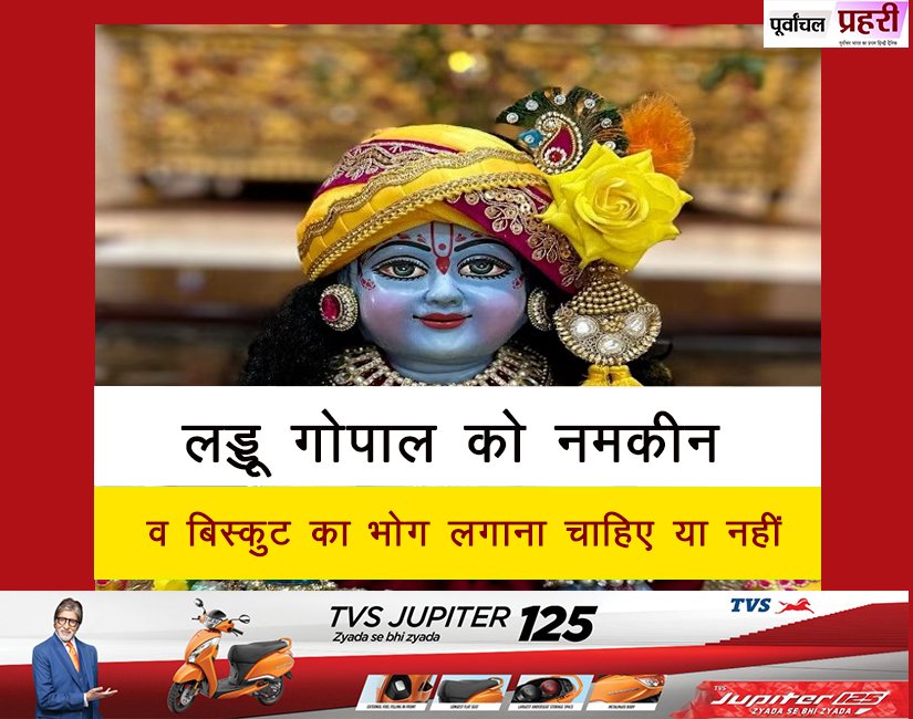लड्डू गोपाल को नमकीन व बिस्कुट का भोग लग...