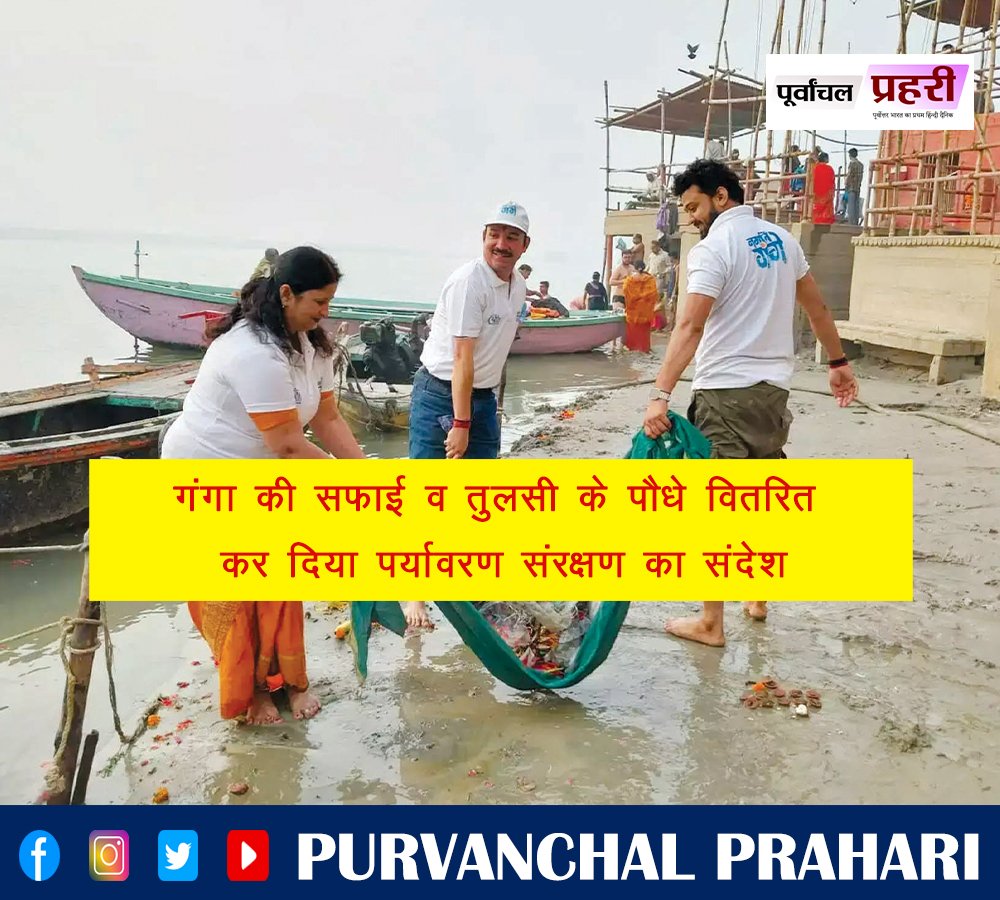 गंगा की सफाई व तुलसी के पौधे वितरित कर...