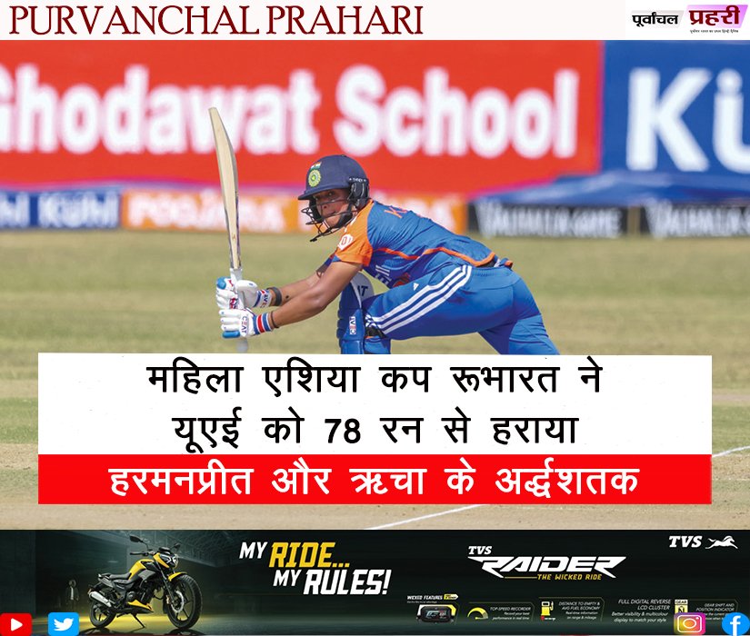महिला एशिया कप :भारत ने यूएई को 78 रन से...