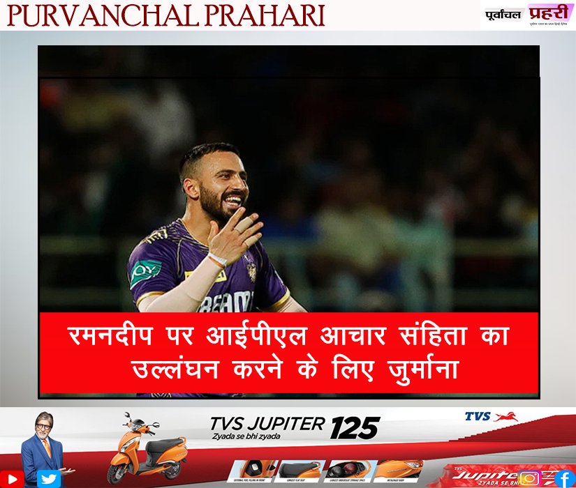 रमनदीप पर आईपीएल आचार संहिता का उल्लंघन...