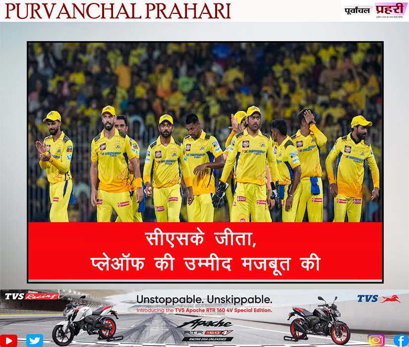 सीएसके जीता, प्लेऑफ की उम्मीद मजबूत की